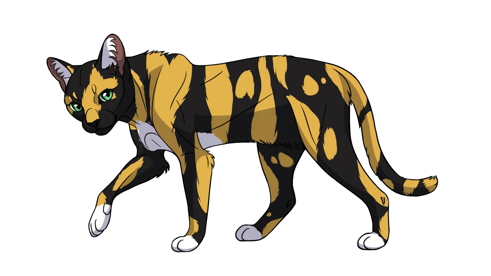 Вишнехвоста — струнка[1], черепахова з білим кішка, із зеленими очима і грубою сірою шкірою на подушечках лап[2].